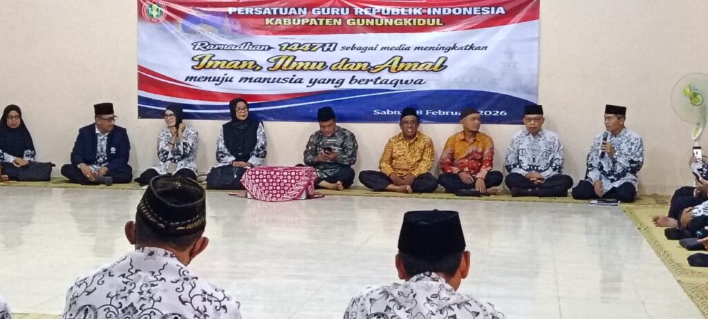 Keluarga besar PGRI Kabupaten Gunungkidul menyelenggarakan kegiatan Buka Bersama dan Pengajian pada Jumat, 28 Februari 2026, bertempat di Gedung Guru PGRI Kabupaten Gunungkidul. Kegiatan ini mengangkat tema “Iman, Ilmu dan Amal Menuju Manusia yang Bertakwa” sebagai refleksi spiritual sekaligus penguatan peran guru dalam membangun karakter generasi bangsa. Suasana kebersamaan dan kekhidmatan begitu terasa sejak awal acara hingga waktu berbuka puasa, mempererat tali silaturahmi antar pengurus dan anggota.